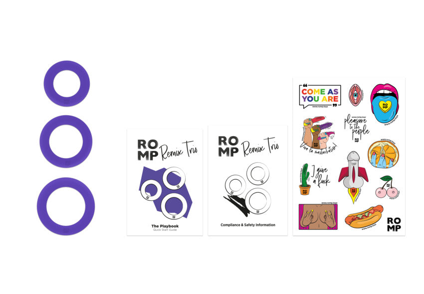 El ROMP Remix Trio es un conjunto de tres anillos para el pene diseñados para mejorar la experiencia sexual al proporcionar erecciones más firmes y duraderas. Aquí están sus características principales: